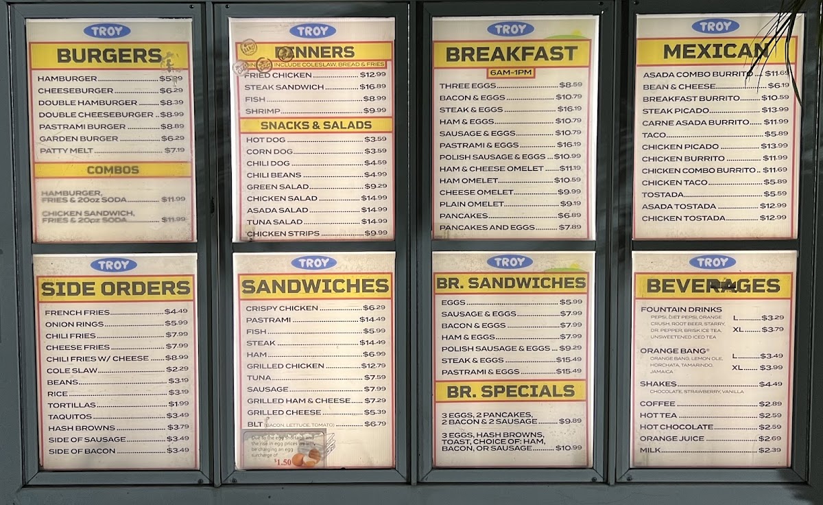 Troy Burgers #8 in Los Angeles is a true neighborhood gem, offering a delicious lineup of classic American and Mexican-inspired fare. Their menu shines with a variety of burgers, from the simple Hamburger and Cheeseburger to more indulgent options like the Pastrami Burger and Double Cheese Burger. Each burger is juicy and perfectly balanced, appealing to both casual diners and burger aficionados.